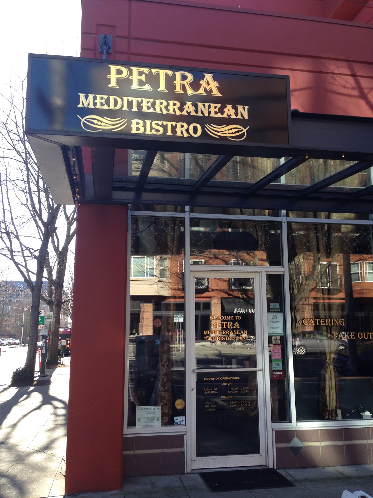 Strewn across the 36 rows of United Flight 1129 to Seattle (Wheeler was in first class, while our fifth roommate, Ani was in row 35) we took roughly the same flight on Wednesday afternoon. Our first night in Seattle we walked into Petra’s Mediterranean Bistro. I flipped through the menu, not knowing what to order and wondering if the rest of my party felt the way I do about sharing food (which is that it should be done as often and as much as possible). I prodded my fellow diners and coerced Ani into splitting a roasted cauliflower dish. Splitting is my favorite.